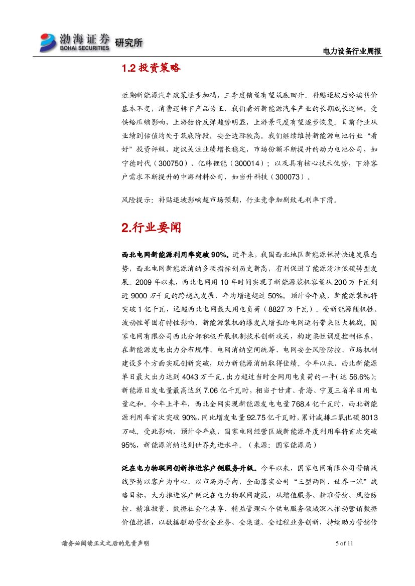 渤海证券:电力设备行业周报:西北电网新能源利用率突破90%.pdf
