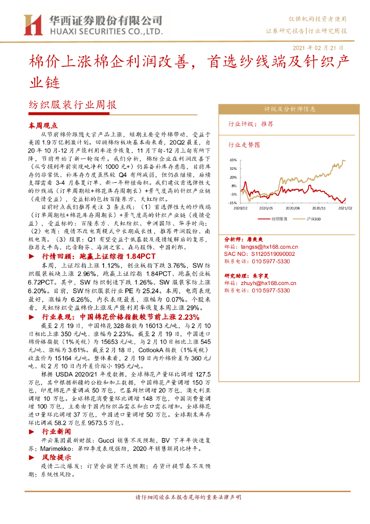 华西证券:纺织服装行业周报:棉价上涨棉企利润改善,首选纱线端及针织产业链.pdf