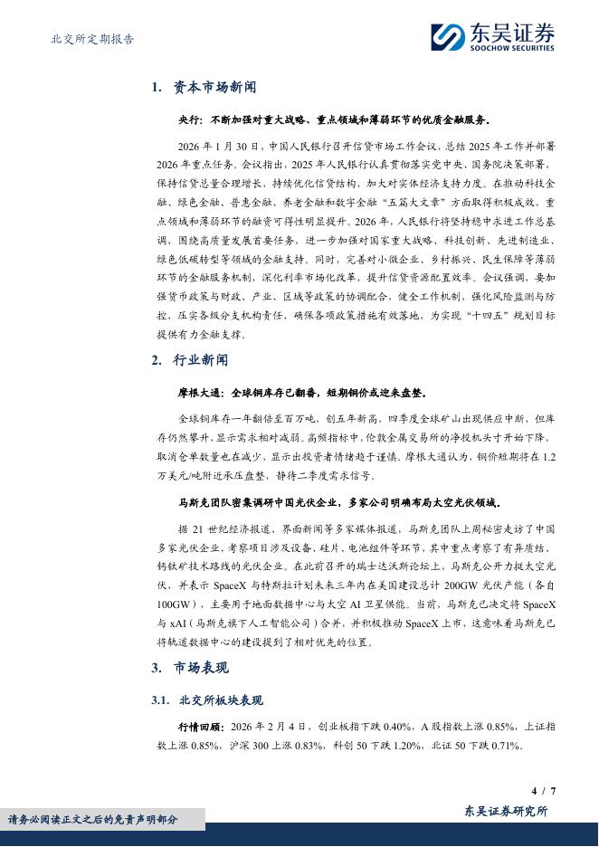 东吴证券:北交所定期报告:央行推进优质金融服务,北证50下跌0.71%-260205.pdf
