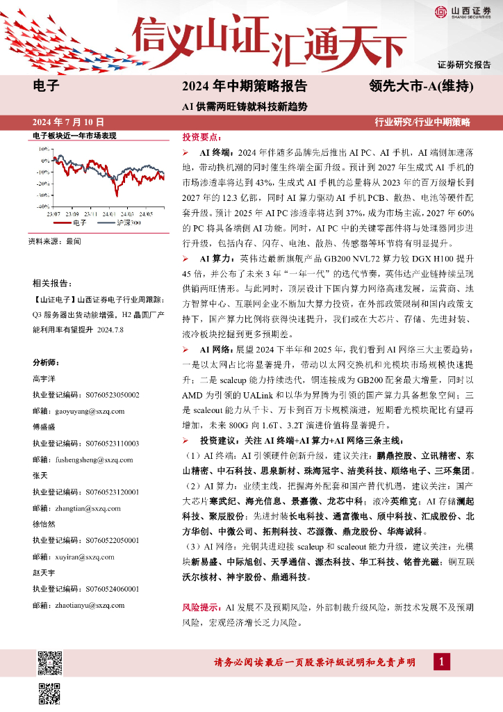 山西证券:电子2024年中期策略报告:AI供需两旺铸就科技新趋势.pdf