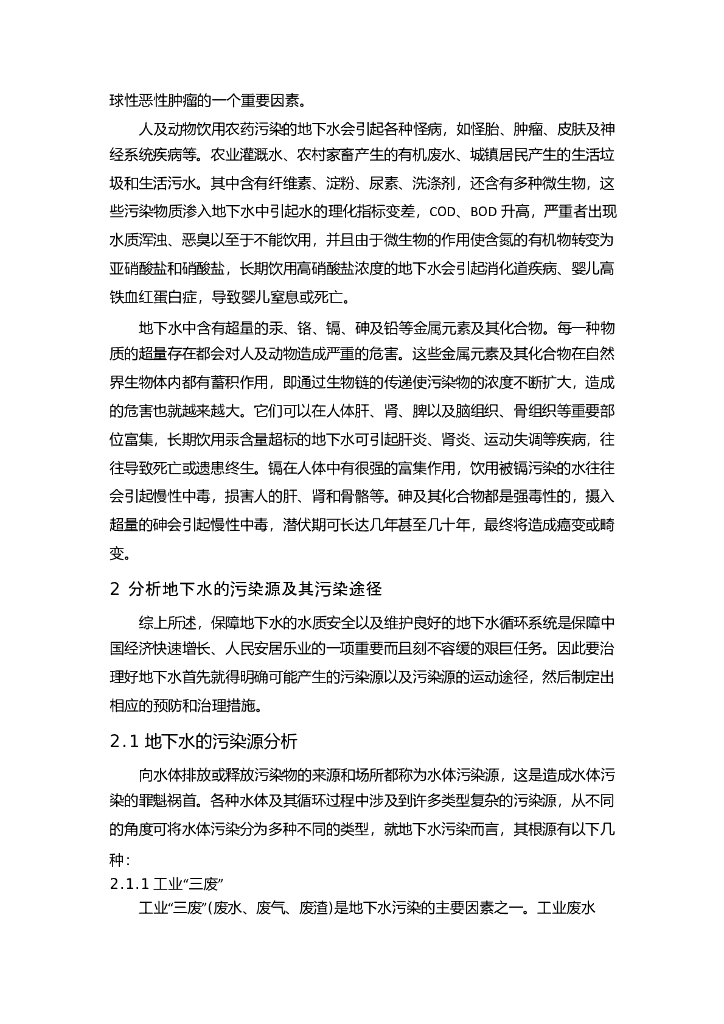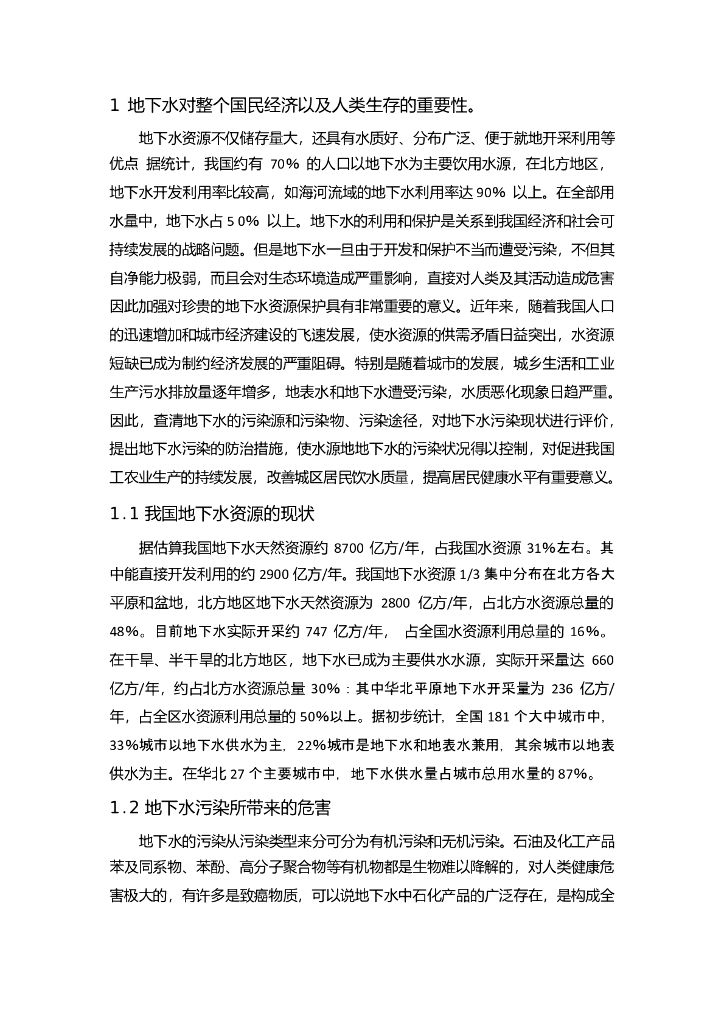 地下水污染和防治毕业论文(给排水科学与工程专业).doc
