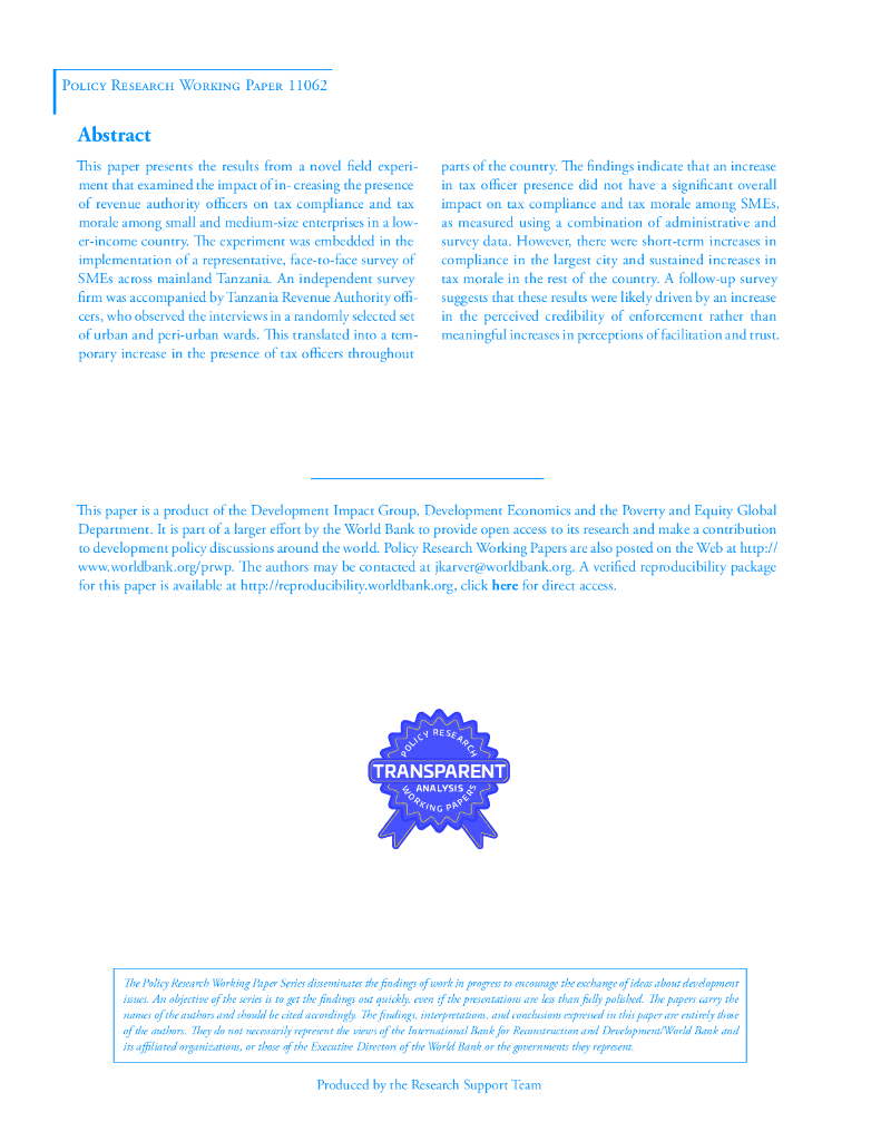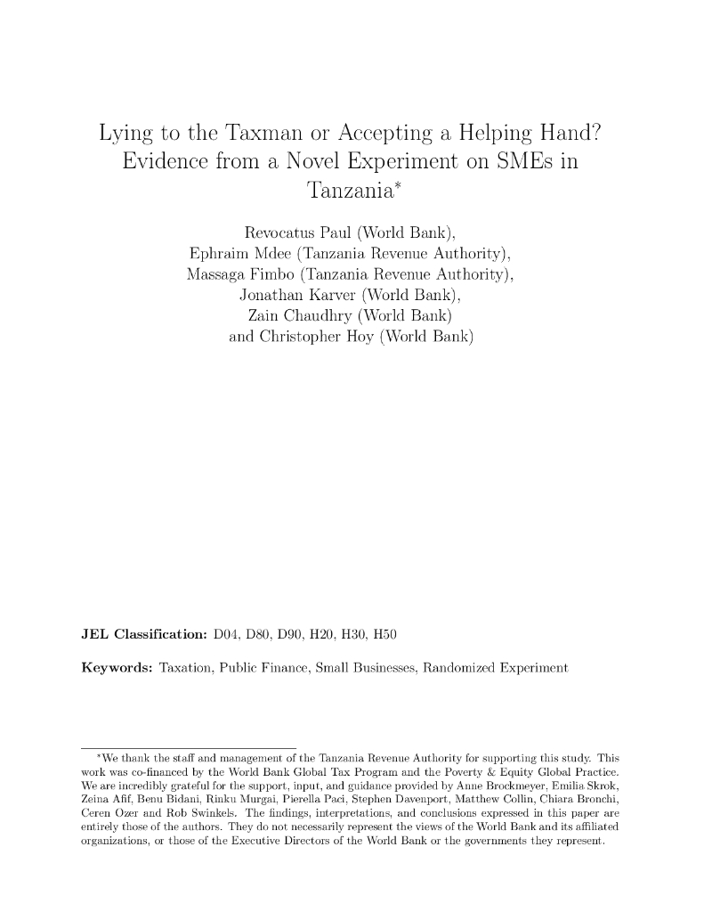 世界银行:向税务人员撒谎还是接受帮助?来自坦桑尼亚中小企业新型实验的证据(英文版).pdf