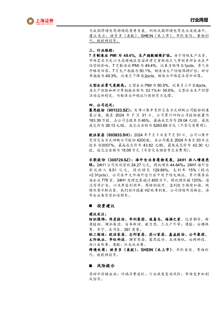 上海证券:轻工纺服行业周报:美联储降息预期升温,重点关注泛家居出口链逻辑.pdf
