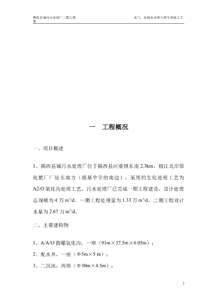 [广东]污水处理厂电气给排水专项施工方案.doc