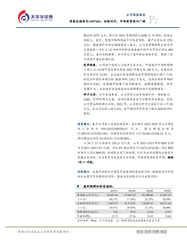 太平洋证券:再看迈瑞医疗:估值回归,市场前景依旧广阔.pdf