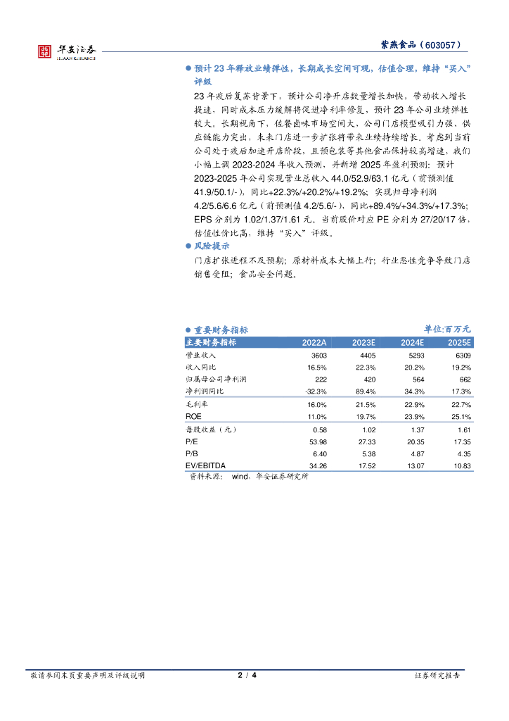 华安证券:紫燕食品(603057)-22年成本承压显著,23年业绩高弹性可期.pdf