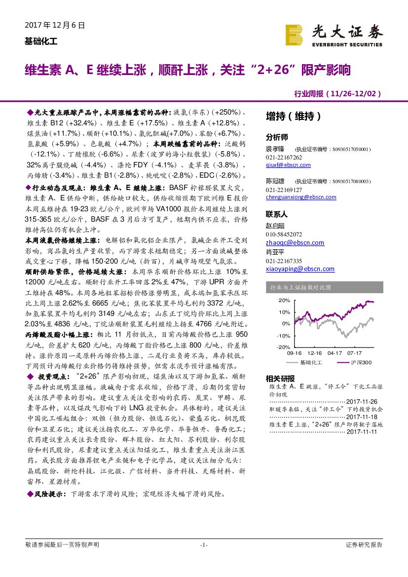 光大证券:基础化工行业周报:维生素 A、E继续上涨,顺酐上涨,关注“2+26”限产影响.pdf