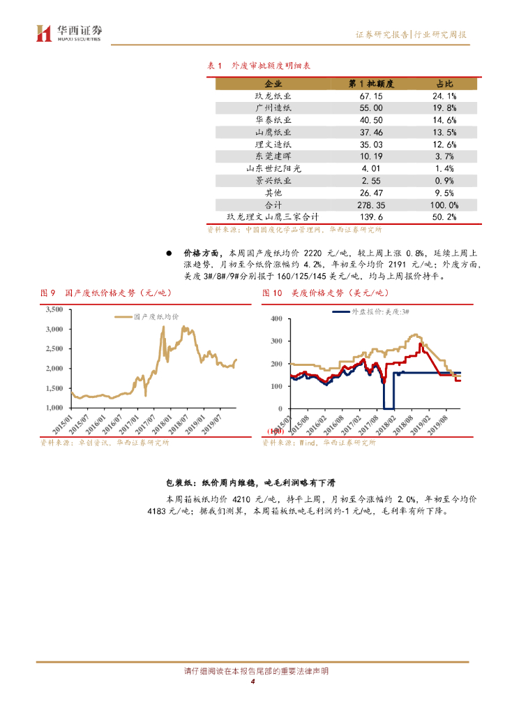 华西证券:造纸行业数据跟踪报告:首批外废额度大幅减量,废纸价格持续上涨.pdf