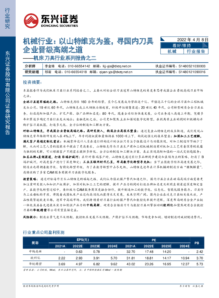东兴证券:机床刀具行业系列报告之二:机械行业:以山特维克为鉴,寻国内刀具企业晋级高端之道.pdf