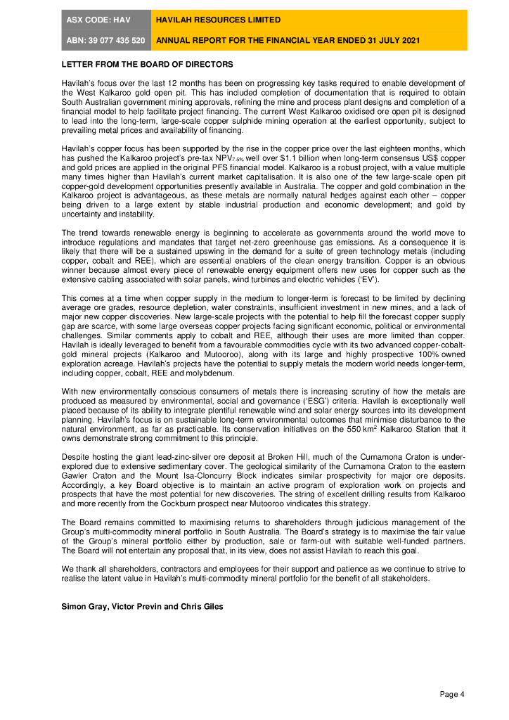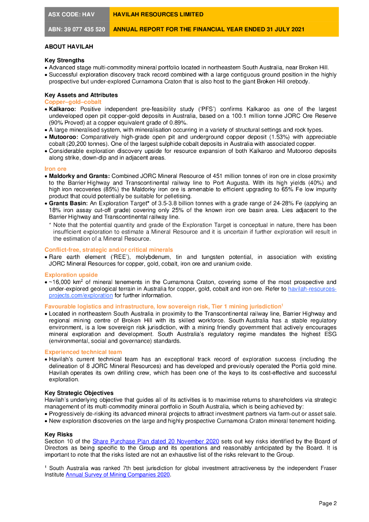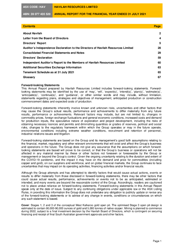 Havilah Resources Limited(HAV)2021财年年度报告(英文版).pdf