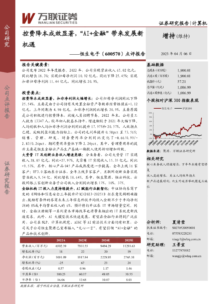 万联证券:恒生电子(600570)-点评报告:控费降本成效显著,“AI+金融”带来发展新机遇.pdf