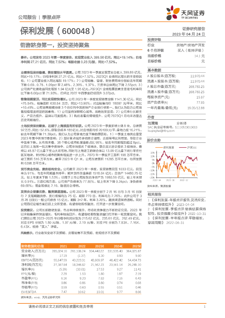 天风证券:保利发展(600048)-销售跻身第一,投资坚持聚焦.pdf