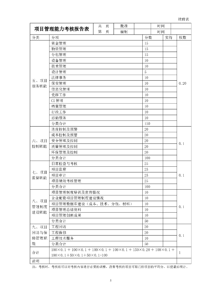 建筑工程施工项目管理考核办法及表格.doc