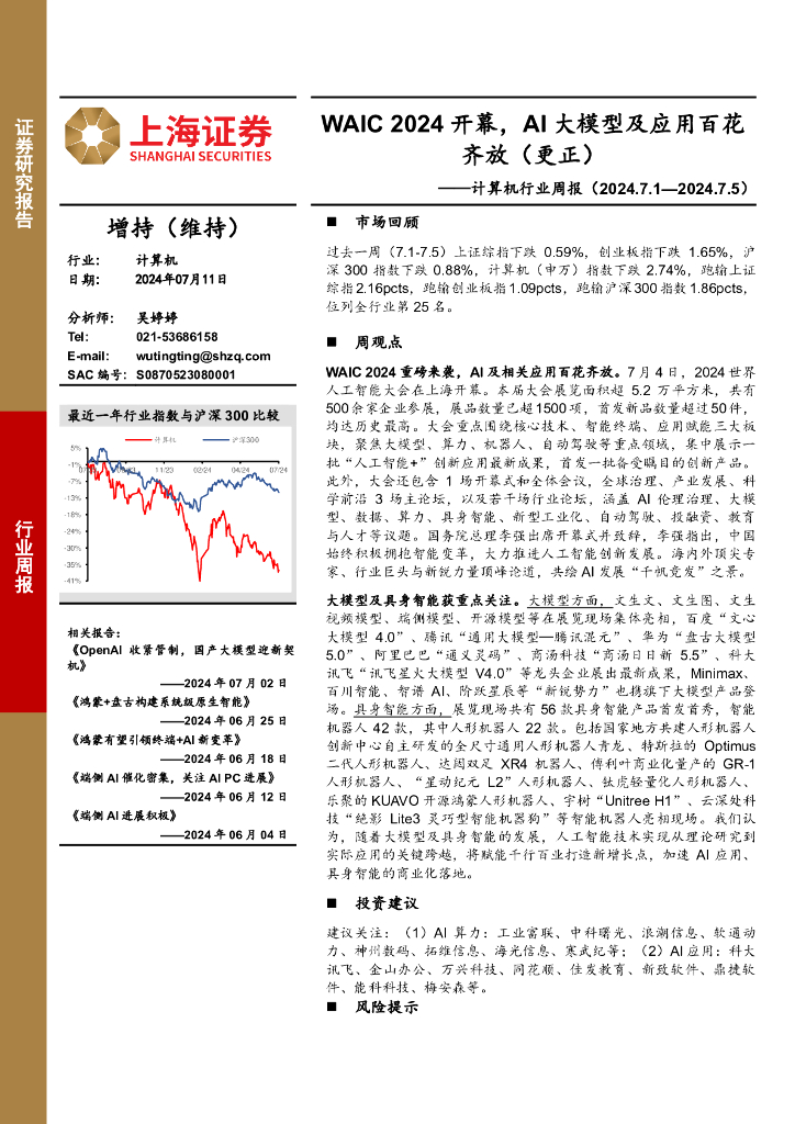 上海证券:计算机行业周报:WAIC2024开幕,AI大模型及应用百花齐放(更正).pdf