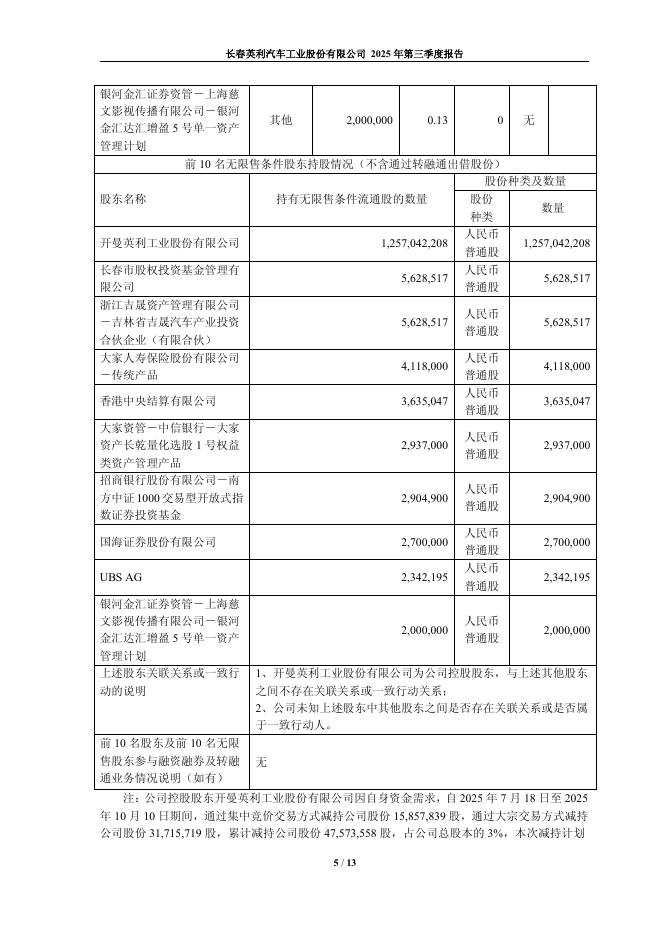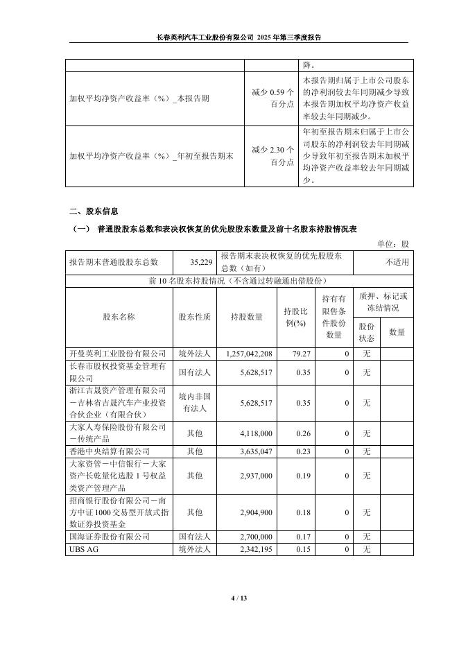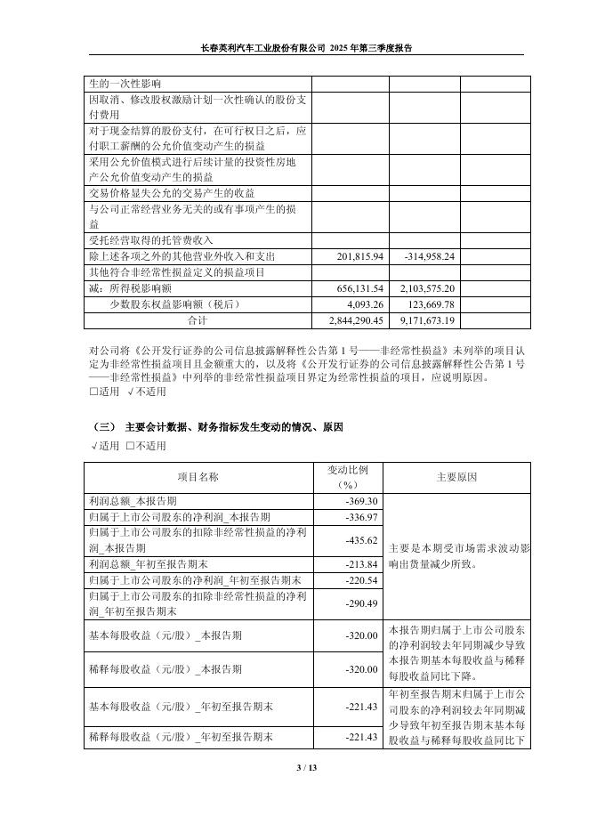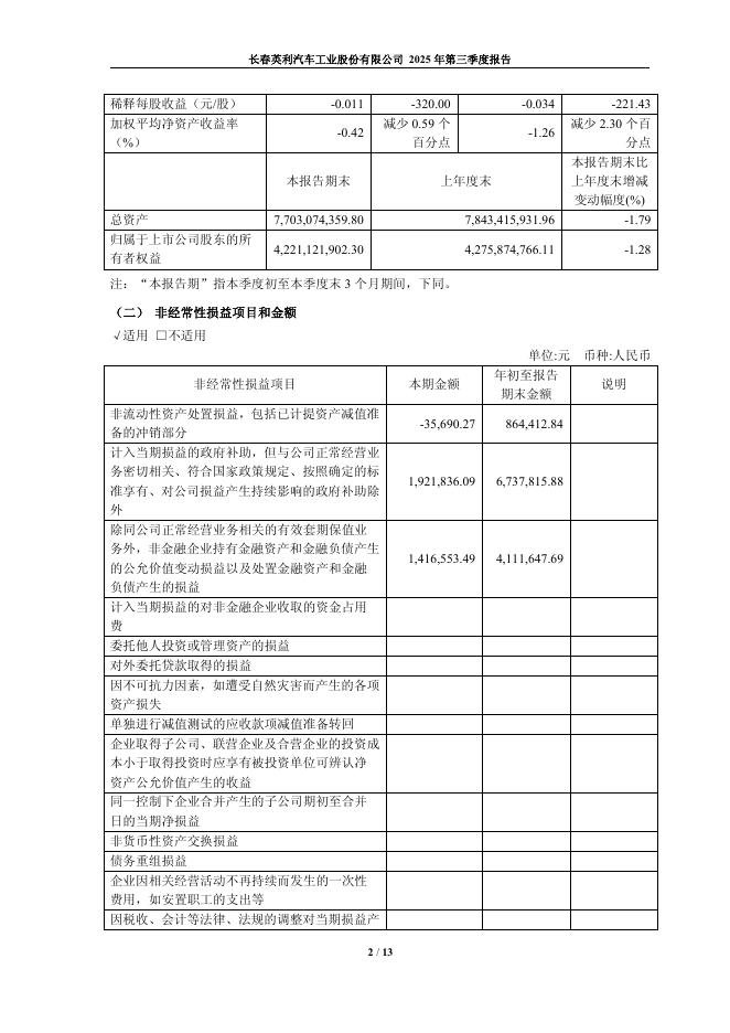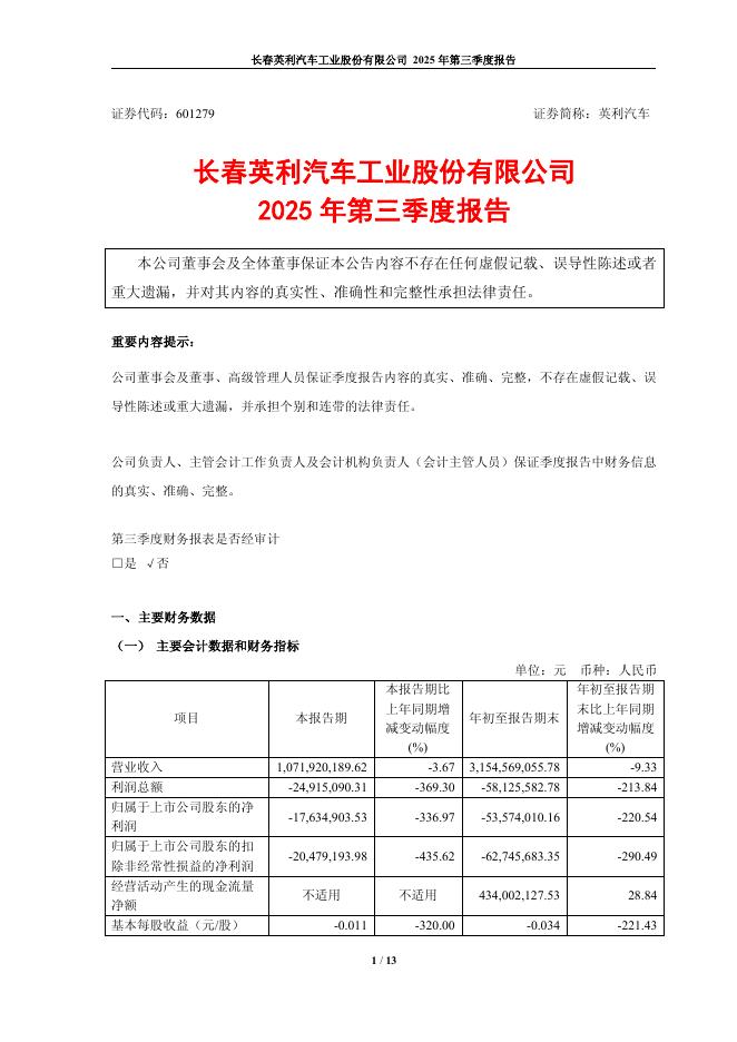 601279-英利汽车:长春英利汽车工业股份有限公司2025年第三季度报告.pdf