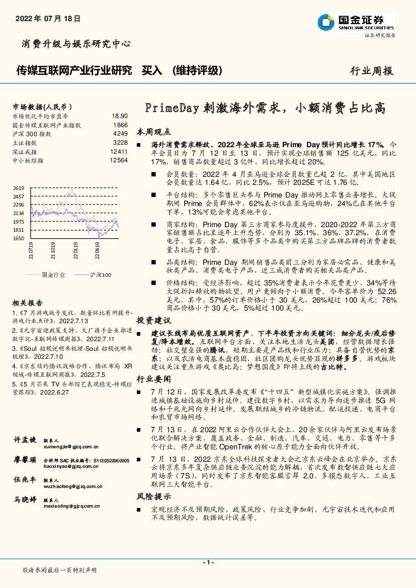 国金证券:传媒互联网产业行业研究:PrimeDay刺激海外需求,小额消费占比高.pdf