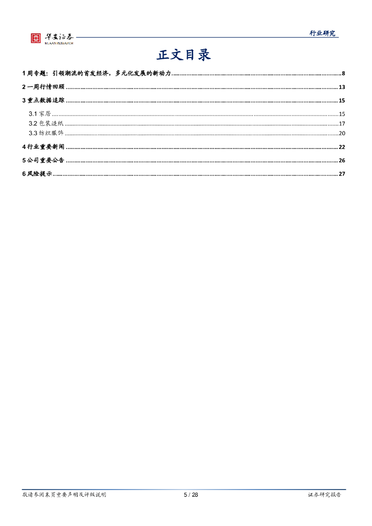 华安证券:轻工纺服行业周报:引领潮流的首发经济,多元化发展的新动力.pdf