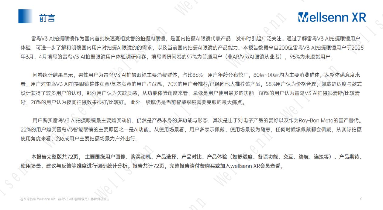 维深Wellsenn XR:2025年雷鸟V3 AI拍摄眼镜用户体验报告(摘要版).pdf