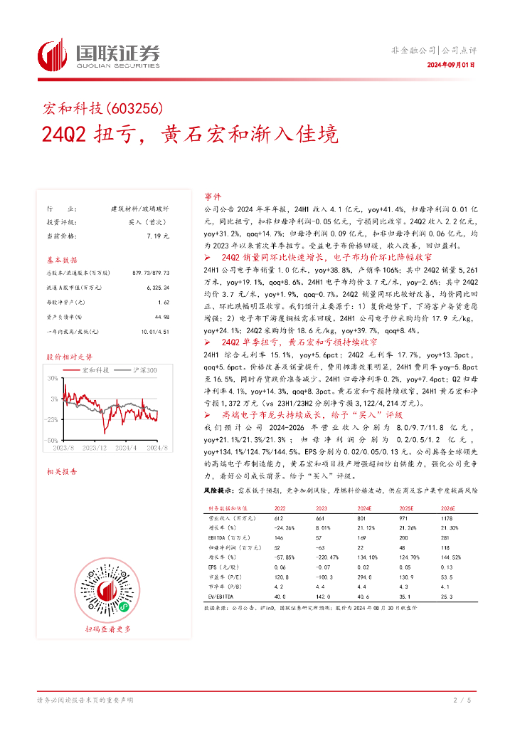 国联证券:宏和科技(603256)-24Q2扭亏,黄石宏和渐入佳境.pdf