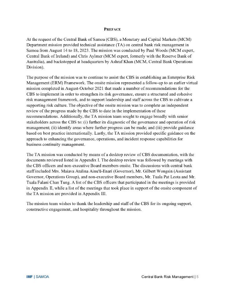 国际货币基金组织:2024萨摩亚:中央银行风险管理技术援助报告(英文版).pdf