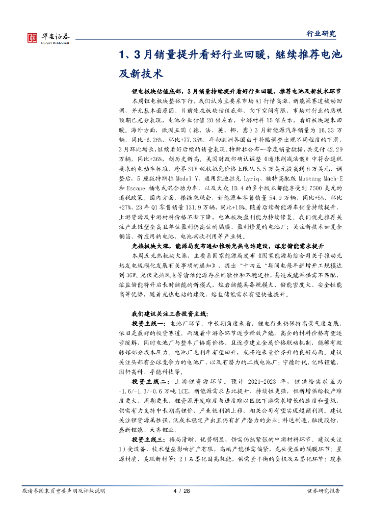 华安证券:电力设备行业周报:3月销量提升看好行业回暖,继续推荐电池及新技术.pdf