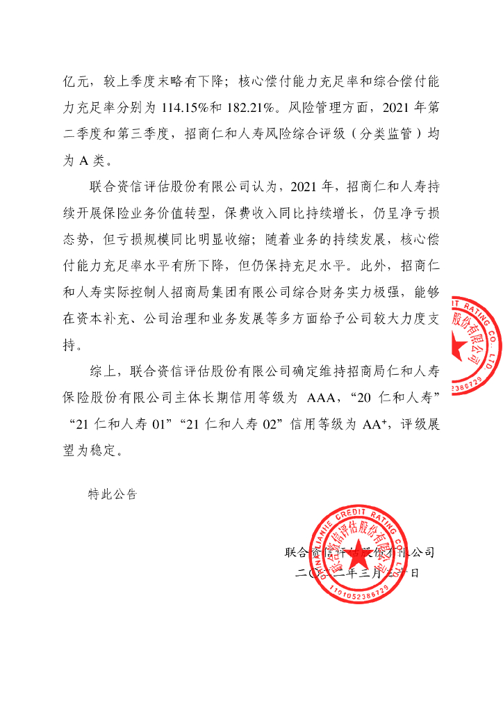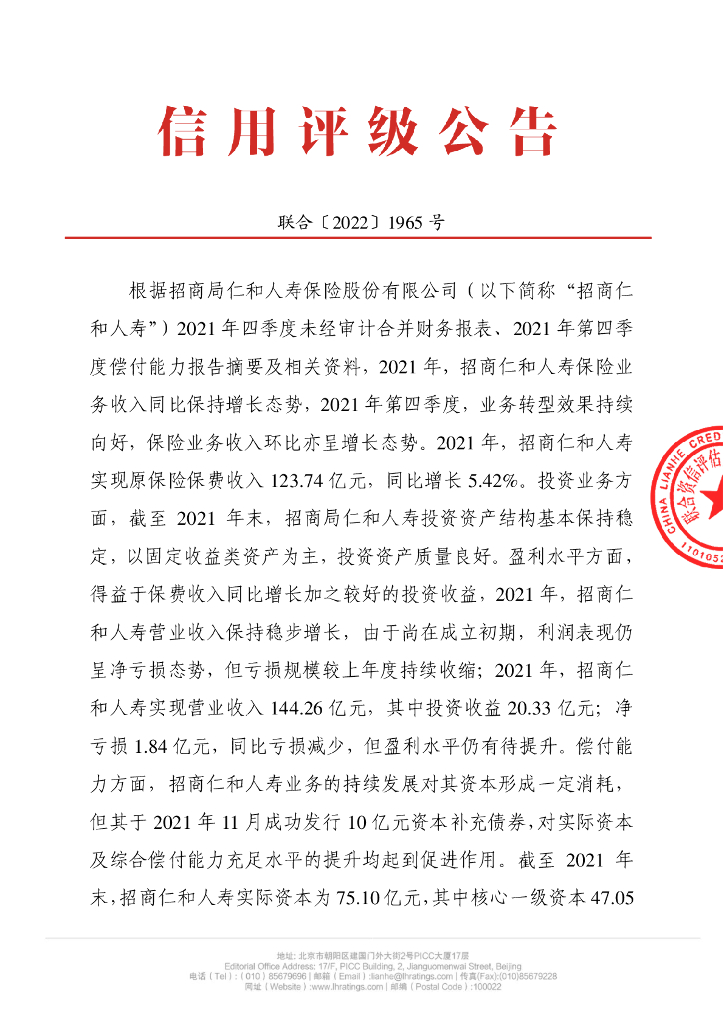 联合资信:招商局仁和人寿保险股份有限公司季度跟踪评级公告.pdf