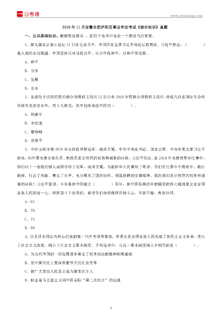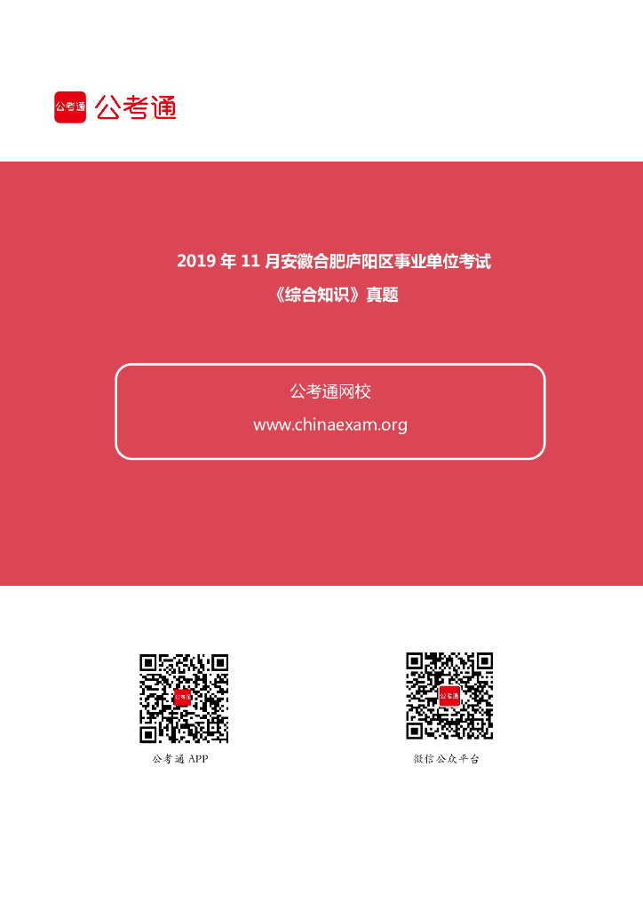 2019年11月安徽合肥庐阳区事业单位考试《综合知识》真题.pdf
