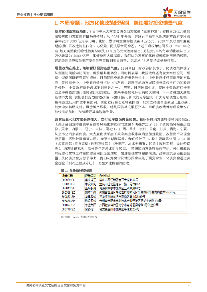 天风证券:建筑装饰行业研究周报:地方化债政策超预期,继续看好投资链景气度.pdf