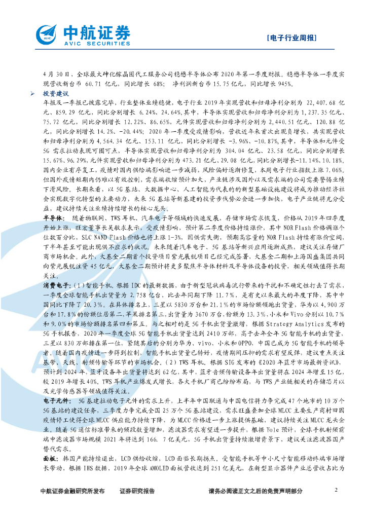 中航证券:电子行业周报:年报及一季报披露完毕,持续关注业绩持续增长的核心龙头.pdf