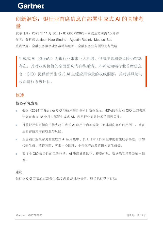 Gartner:2023年创新洞察:银行业首席信息官部署生成式AI的关键考量报告.pdf