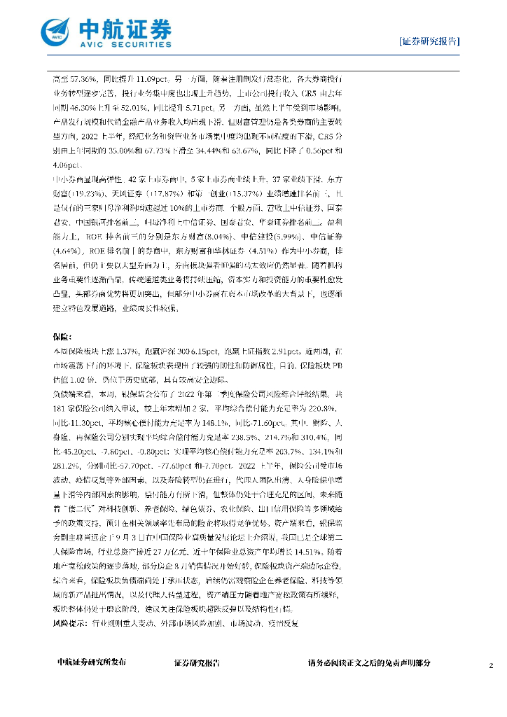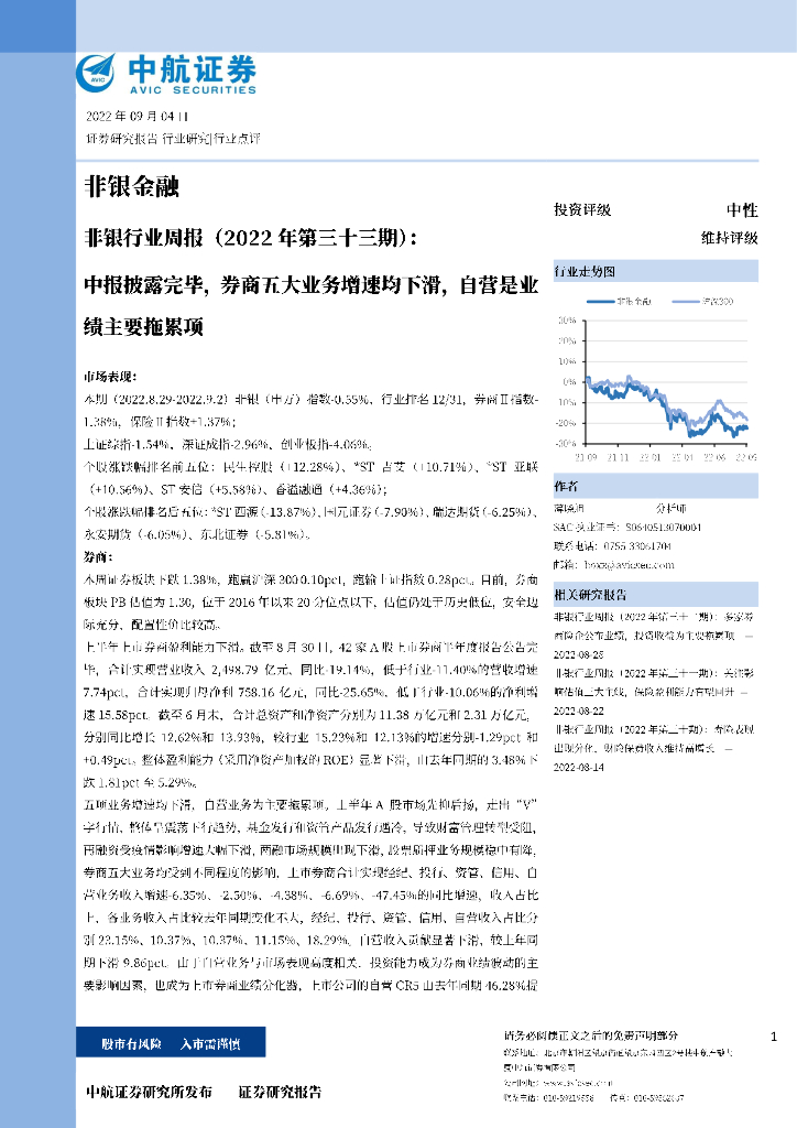 中航证券:非银行业周报(2022年第三十三期):中报披露完毕,券商五大业务增速均下滑,自营是业绩主要拖累项.pdf