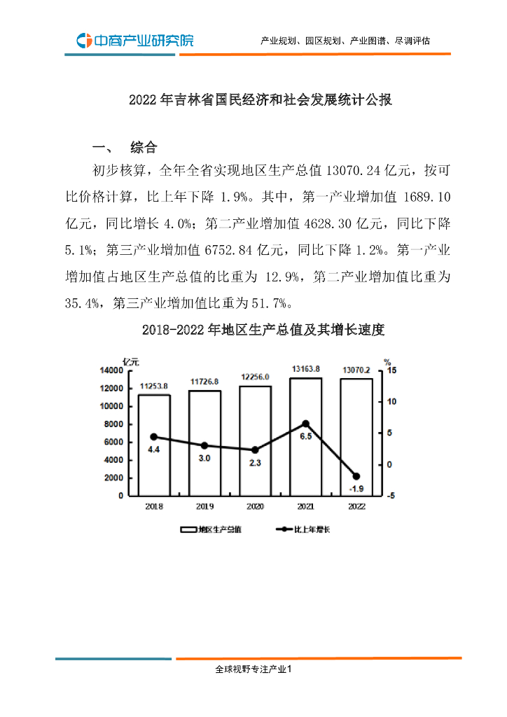 中商产业研究院:2022年吉林省国民经济和社会发展统计公报.pdf