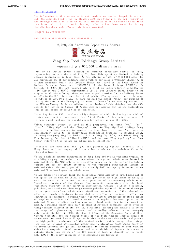 荣业食品控股集团有限公司(Wing Yip Food Holdings Group Limited)美股纳斯达克IPO上市招股说明书.pdf