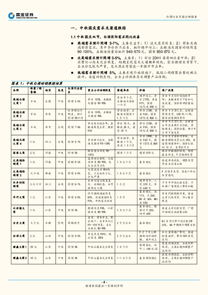 国金证券:白酒行业专题分析报告:中秋白酒动销向好,紧抓确定性及改革主线.pdf