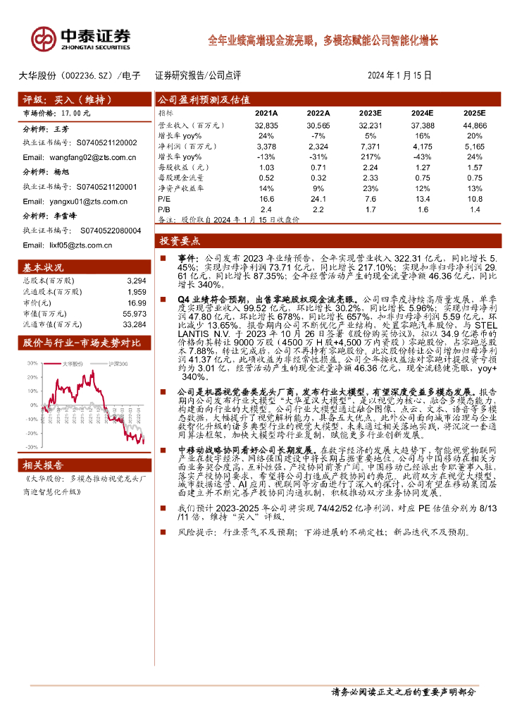 中泰证券:大华股份(002236)-全年业绩高增现金流亮眼,多模态赋能公司智能化增长.pdf