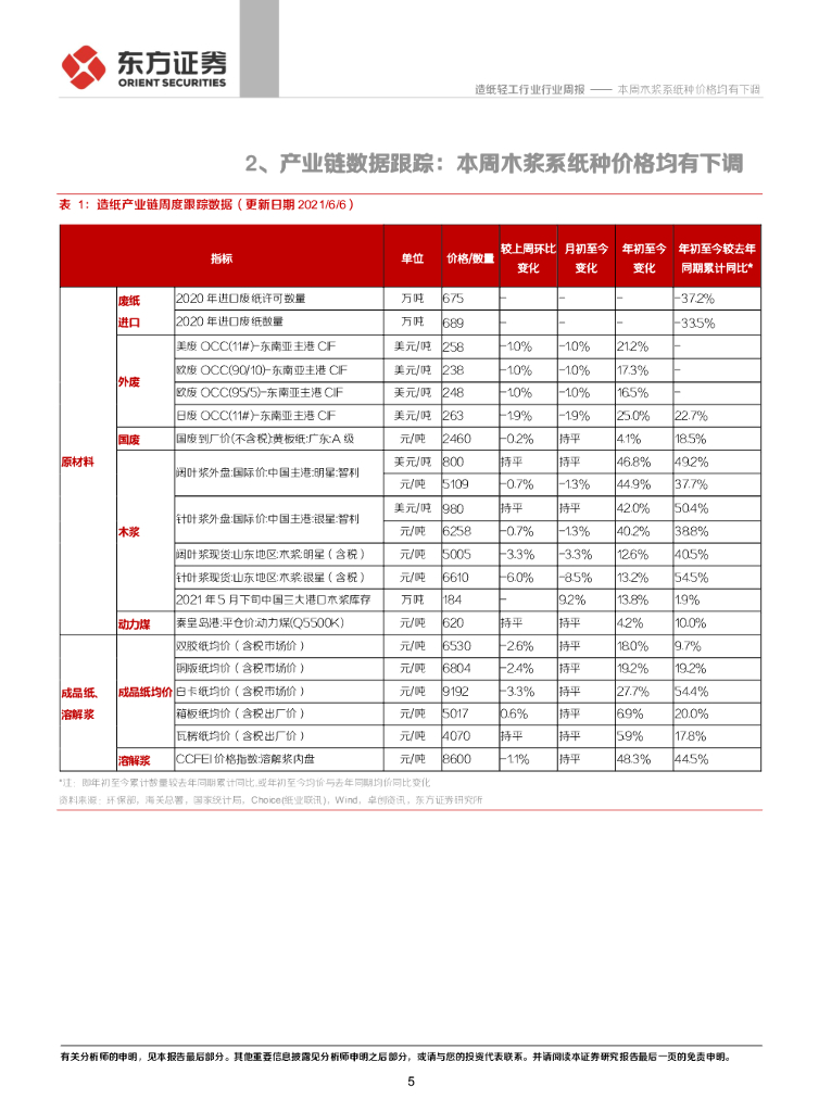 东方证券:造纸产业链数据每周速递:本周木浆系纸种价格均有下调.pdf