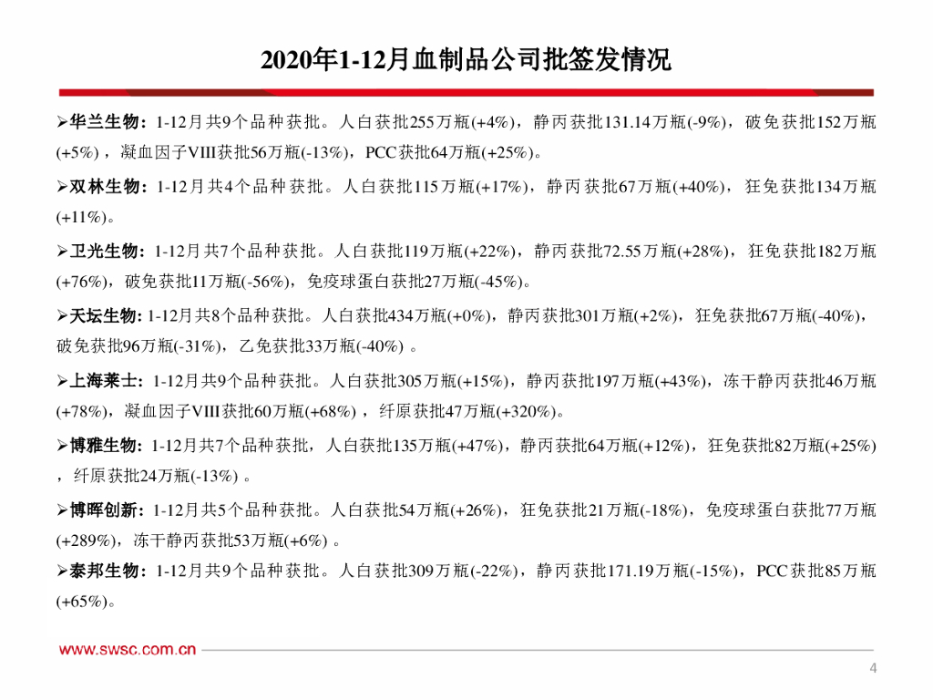 西南证券:2020年1-12月血制品批签发:Q4国产人白持续下滑.pdf