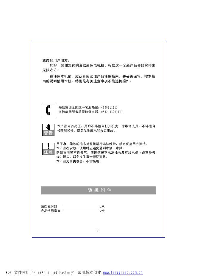 海信 HDP290BD 彩色电视机 使用指南.pdf