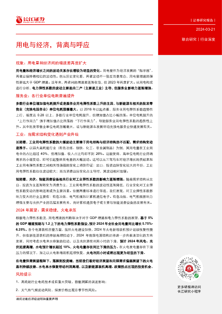 长江证券:电力行业:用电与经济,背离与呼应.pdf
