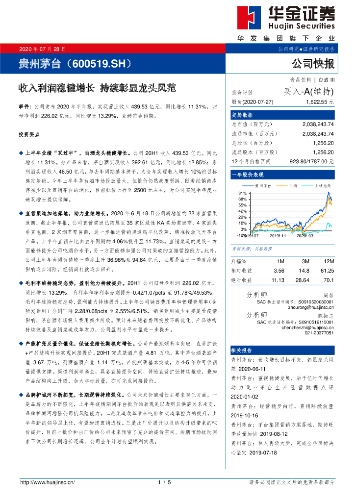 华金证券:贵州茅台(600519)-收入利润稳健增长 持续彰显龙头风范.pdf