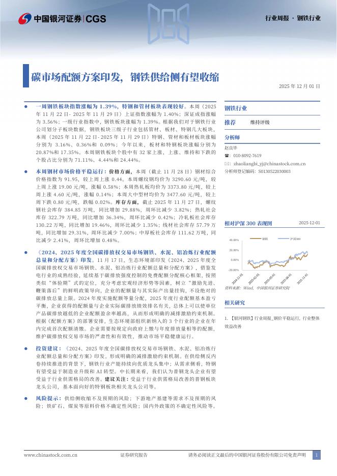 中国银河:钢铁行业行业周报·钢铁行业:碳市场配额方案印发,钢铁供给侧有望收缩.pdf