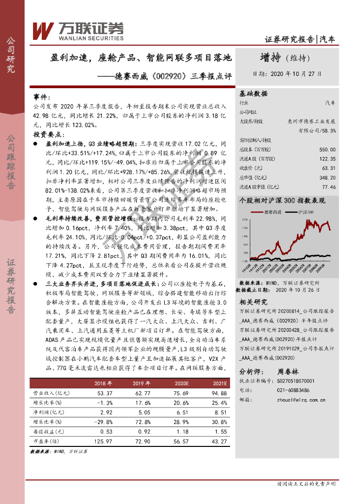 万联证券:德赛西威(002920)-三季报点评:盈利加速,座舱产品、智能网联多项目落地.pdf