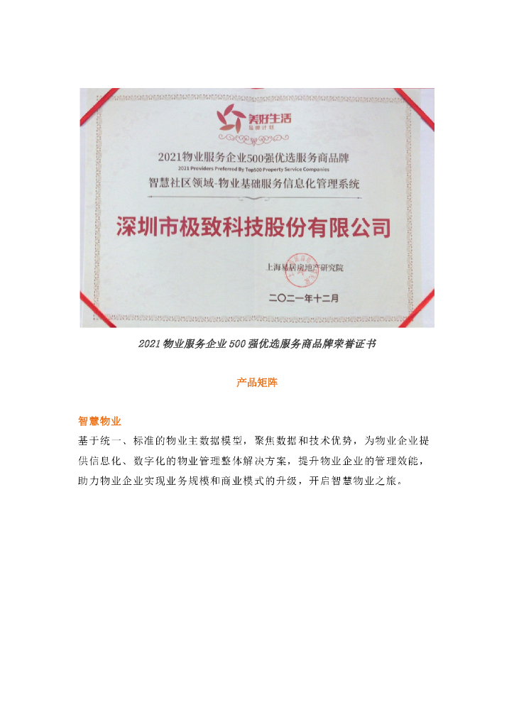 喜讯丨极致科技荣获2021美好生活服务500强.doc