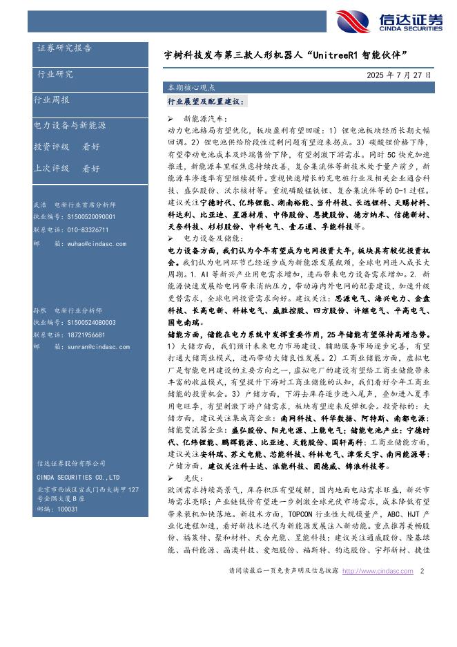 信达证券:电新周报:宇树科技发布第三款人形机器人“UnitreeR1智能伙伴”电力设备与新能源.pdf