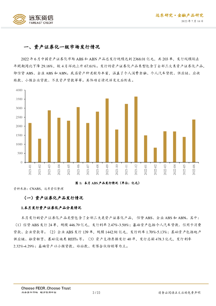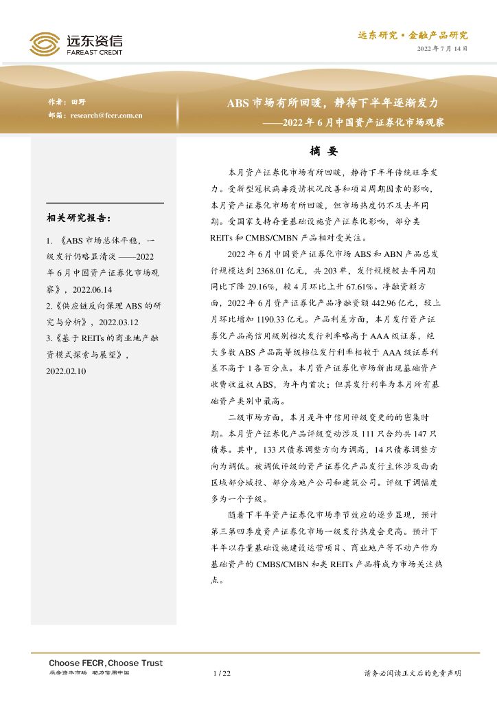 远东资信:2022年6月中国资产证券化市场观察_ABS市场有所回暖,静待下半年逐渐发力.pdf