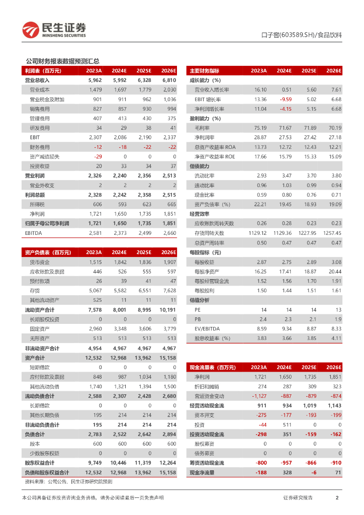 民生证券:口子窖(603589)-2024年三季报点评:Q3短期业绩承压轻装上阵恢复可期.pdf