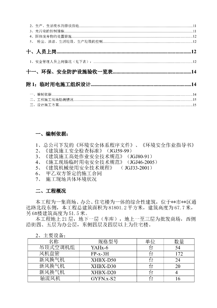 某市综合楼通风空调工程环境安全施工组织设计(Word.22页).doc