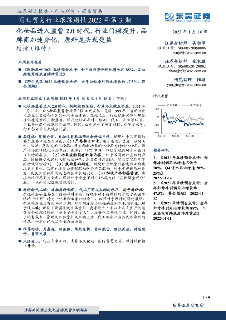东吴证券:商业贸易行业跟踪周报2022年第3期:化妆品进入监管2.0时代,行业门槛提升,品牌商加速分化,原料龙头或受益.pdf