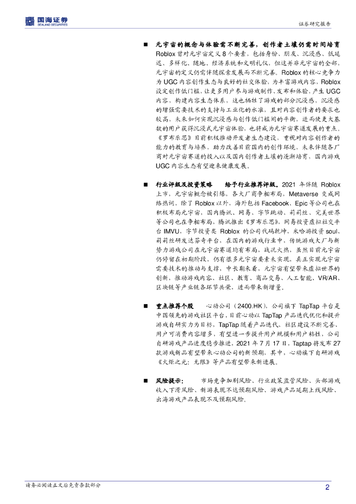 国海证券:传媒行业事件点评报告:腾讯推出《罗布乐思》元宇宙赛道布局火热.pdf