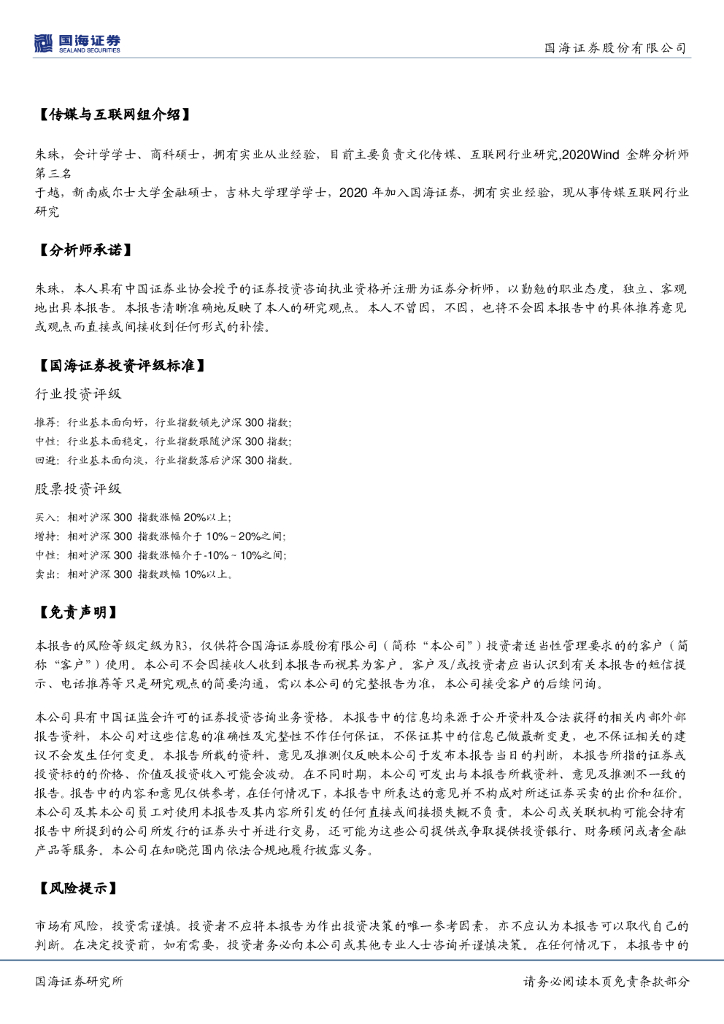 国金证券:传媒互联网产业行业研究:边走边看,等待机会